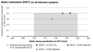 Static indentation @40°C on all bitumen systems